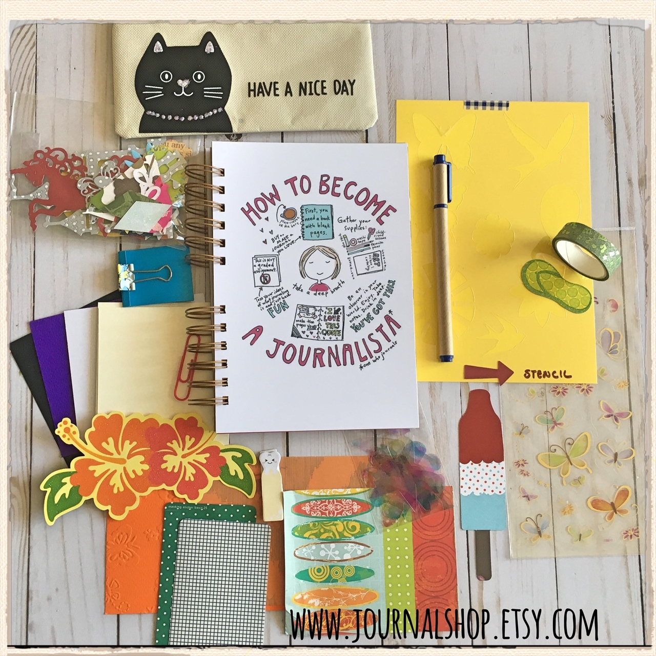 Το journal συνοδεύεται με κιτ δημιουργίας που περιέχει διάφορα ειδη όπως χρωματιστό στυλό, αυτοκόλλητα, λουλούδια, κουμπάκια, die-cuts κλπ