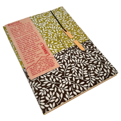- Μαλακό Εξώφυλλο από χειροποίητο χαρτί Lokta τυπωμένο στο χέρι με παραδοσιακές τεχνικές screen printing.
