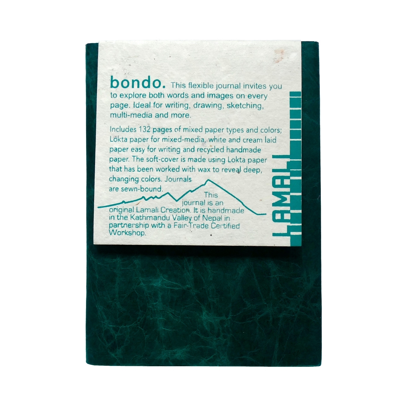Χειροποίητα σημειωματάρια από την Lamali, με διάφορα χαρτιά κατάλληλα για σχέδιο, γραφή και mixed media! Το μαλακό εξώφυλλο των Bondo Journals, είναι φτιαγμένο από χειροποίητο χαρτί Lokta στο οποίο έχει γίνει ειδική επεξεργασία με κερί για να αδιαβροχοποιηθεί και να αναδειχθούν τα εντυπωσιακά, βαθιά του χρώματα. Το journal έχει 132 σελίδες από διαφορετικά χαρτιά, που θα αποτελέσουν έμπνευση για διάφορες τεχνικές δημιουργίας