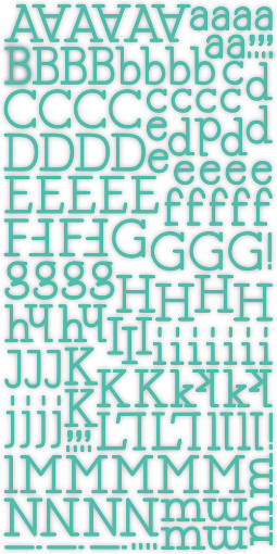 285 puffy αυτοκόλλητα, σε γαλάζιο χρώμα, με τα γράμματα της λατινικής αλφαβήτου (κεφαλαία, μικρά), αριθμούς και σύμβολα.