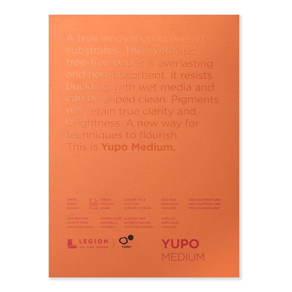 Το χαρτί Yupo, είναι η καινούργια τεχνολογία στο χαρτί. Είναι συνθετικό χαρτί 74lb (200 gsm), φτιαγμένο από 100% polypropylene. Είναι αδιάβροχο και πολύ δυνατό. Μένει εντελώς επίπεδο ό,τι medium και να του βάλετε επάνω.