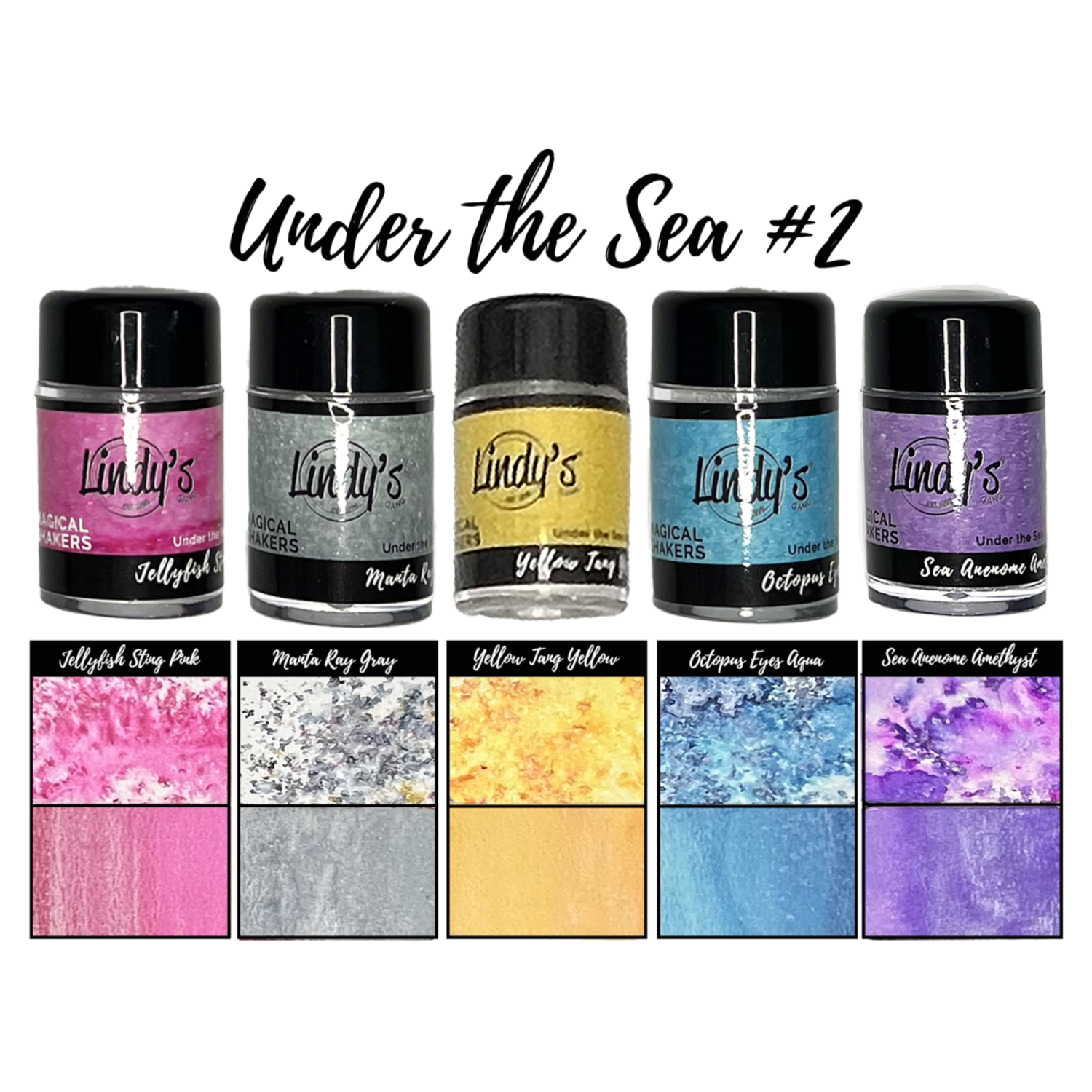 Τα αγαπημένα Magical Shaker 2.0 της Lindy’s Gang έρχονται τώρα και σε σετ — και το Under the Sea 2 είναι μια υπέροχη συλλογή 5 χρωμάτων που αποδίδουν την παλέτα του ωκεανού: ροζ μέδουσας, ασημένιο γκρι, λαμπερό κίτρινο, aqua μπλε και μωβ με ασημένιες λάμψεις. Ιδανικά για καλοκαιρινά, θαλασσινά ή ζωηρά mixed media projects.