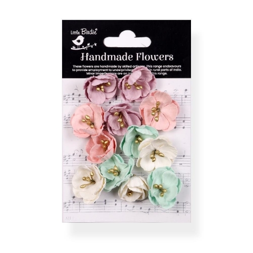 12 χειροποίητα, χάρτινα λουλούδια από τη συλλογή Embossed Daisies της Little Birdie. Με χρυσό στήμονα που χαρίζει vintage άρωμα στις δημιουργίες σας.