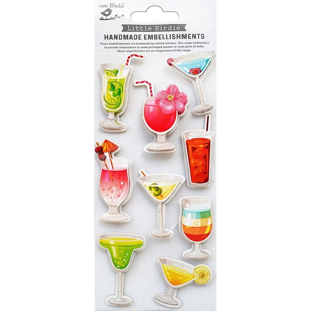 Οι διάφανες σφραγίδες φτιάχνουν δύο διαφορετικά cocktails με διακοσμητικά φρουτάκια και τα εορταστικά sentiments Party time, Ιt's cocktail hour somewhere και Do you know what rhythms with birthday? Cocktails! Οι μήτρες κοπής φτιάχνουν τα περιγράμματα των ποτηριών.