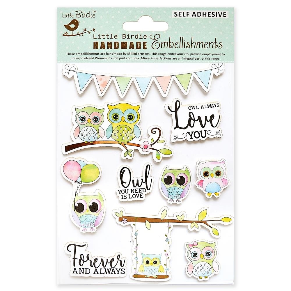 👉 Η συσκευασία περιέχει 10 διαστατικά αυτοκόλλητα με διακριτικά εφέ ακουαρέλας για να δώσετε βάθος και χρώμα στις δημιουργίες σας. Εικόνες με κουκουβάγιες και sentiments.