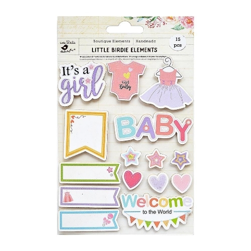 👉 Η συσκευασία περιέχει 15 αυτοκόλλητα. Εικόνες με μωρουδιακά, καρδούλες, αστεράκια, banners και sentiments για κοροτσάκια.