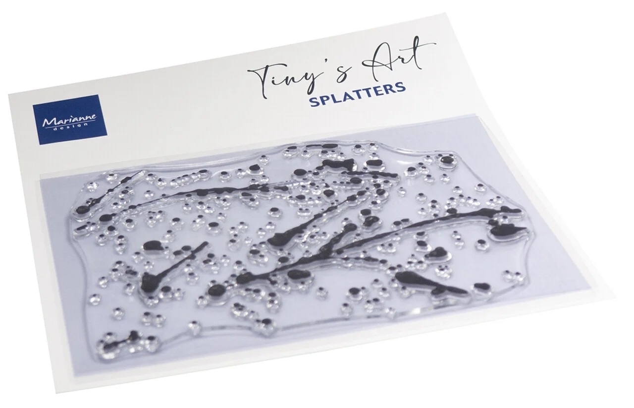 Διάφανη σφραγίδα φόντου με splatters από την Marianne Design. Ιδανική για κάρτες, art journals, scrapbooking layouts, mixed-media έργα και άλλα πολλά.