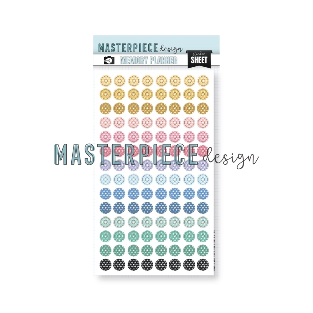 112 στρογγυλά αυτοκόλλητα σε διάφορα χρώματα από τη σειρά Memory Planner της Masterpiece Design.