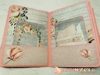 Το συγκεκριμένο album έχει διαστάσεις 6 ¼ x 4 ¼ ίντσες (15,9cm x 10.8cm) και η ράχη του έχει φάρδος 1 ¼ ίντσες (3cm). Αποτελείται από 9 spreads (δισέλιδα) κι έχει αρκετές «τσεπούλες» γιαtags, journaling cards και άλλα ephemera.