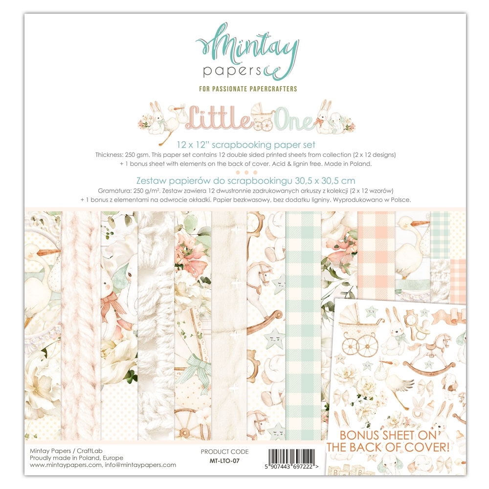 Το Little One Paper Pack 12"×12" της Mintay Papers έχει σχεδιαστεί για να αποτυπώνει τις πιο πολύτιμες στιγμές της πρώτης παιδικής ηλικίας. Γλυκά illustrations, παιδικά μοτίβα και διακριτικά patterns δημιουργούν μια ήρεμη και φωτεινή αισθητική που αφήνει χώρο στις φωτογραφίες και στο συναίσθημα.