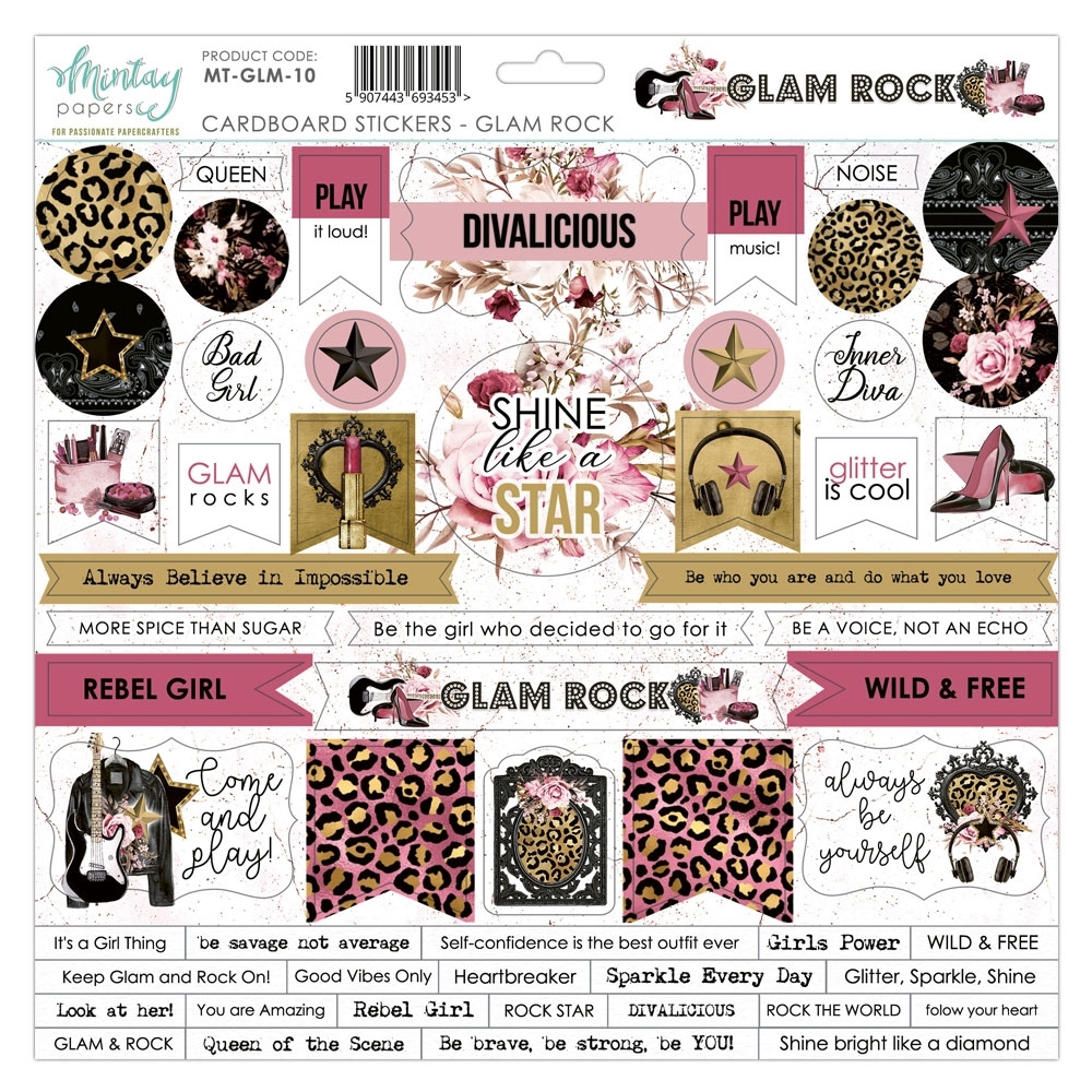 56 chipboard αυτοκόλλητα με τίτλους και elements σε καρτέλα 30.5x30.5 cm. από την Karola Witzcak και την Mintay Papers.