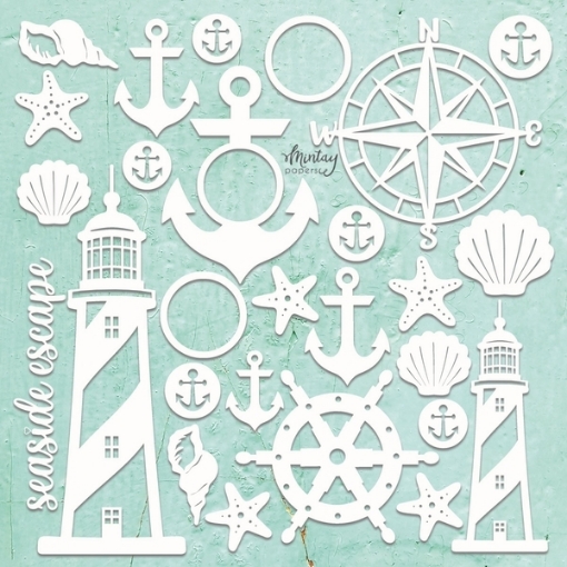 Διακοσμητικά chipboard από την Mintay Papers. Η σειρά Seaside Escape είναι μια θαλασσινή ιστορία για μια βόλτα στην παραλία, εκεί όπου κοχύλια και αστερίες χορεύουν αρμονικά κάτω από το βυθό της θάλασσας. Είναι όταν περπατάτε σε όμορφους αμμόλοφους ή κάθεστε ήσυχα κάπου, παρέα με τον εαυτό σας, ατενίζοντας τα κύματα που σκάνε σε μοναχικούς φάρους. Μπορεί να είναι καλοκαίρι ή χειμώνας, διακοπές ή μια συνηθισμένη μέρα. Στην πραγματικότητα η ιστορία είστε εσείς!
