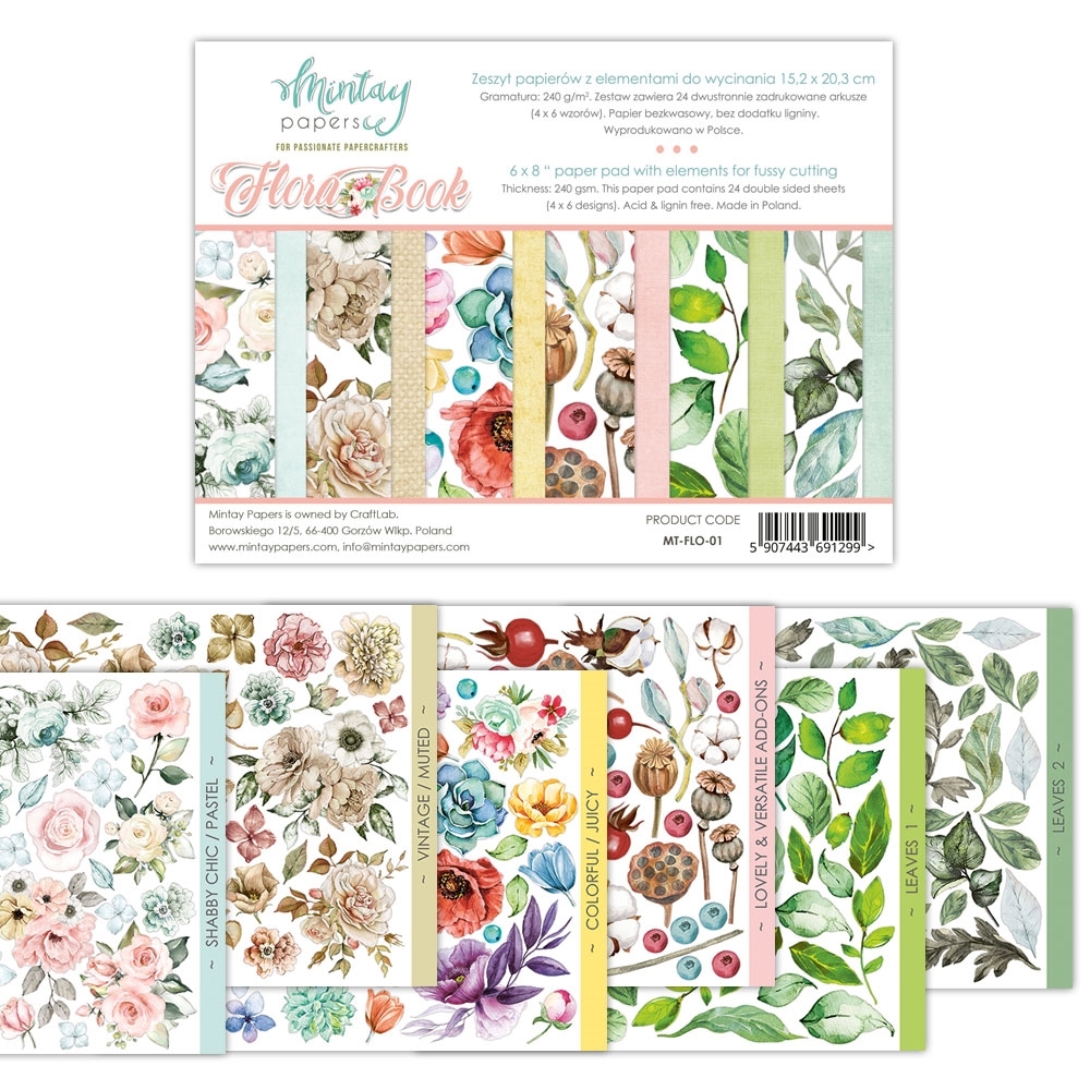 Mintay Papers Flora Book 6''×8'' | Μπλοκ Fussy Cutting Λουλουδιών & Φύλλων