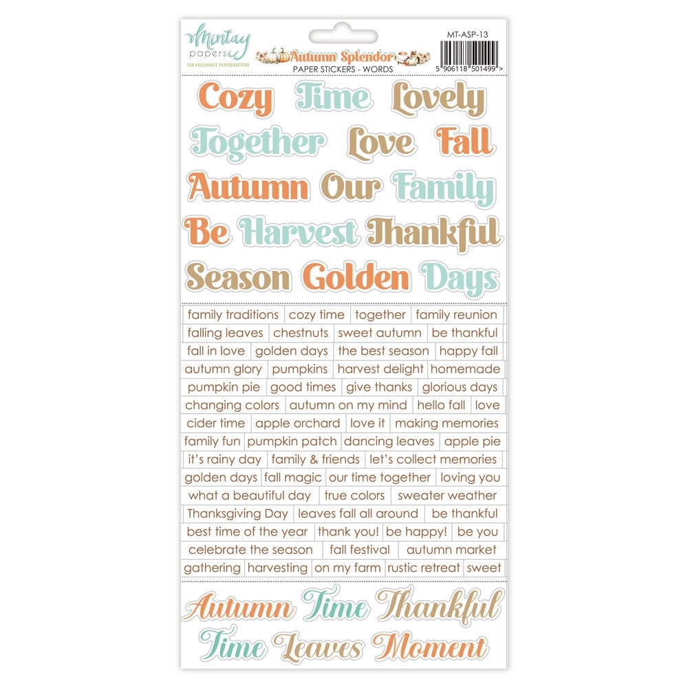 - 80 χάρτινα αυτοκόλλητα με sentiments όπως Cozy Time, Better Days, Hello Fall, Making Memories, Fall in Love και άλλα πολλά