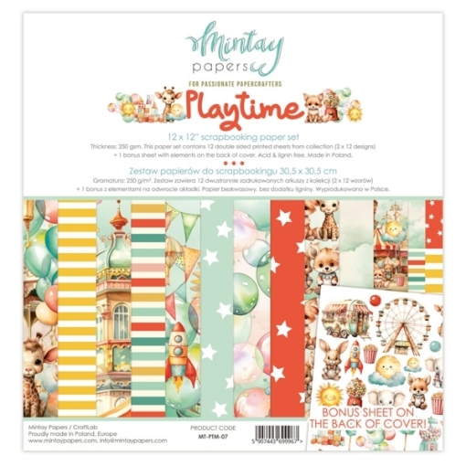 Πολύχρωμη, χαρούμενη, γεμάτη με απίθανα πλάσματα βγαλμένα κατευθείαν μέσα από λούνα πάρκ - η συλλογή Playtime της Mintay Papers είναι ιδανική για να δημιουργήσετε οποιοδήποτε project για μωρό ή μικρό παιδί.