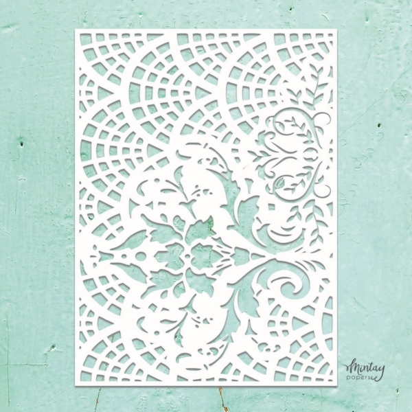 👉 Η συσκευασία περιέχει ένα στένσιλ με vintage δαντέλα. Ιδανικό background για κάρτες, προσκλήσεις, άλμπουμ, journals, scrapbooking layouts και πολλά άλλα.