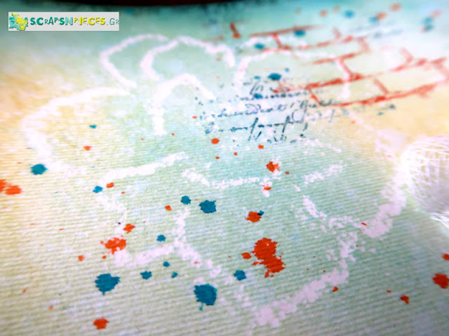 Τέλος πάτησα μερικές σφραγίδες εδώ κι εκεί και πιτσίλισα με ink sprays.