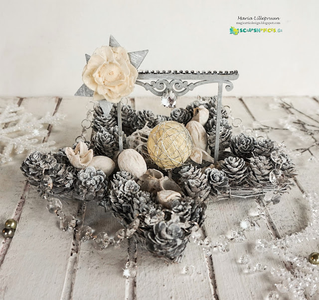 Today, we welcome our mixed media designer, Maria Lillepruun, who's showing us how to make a rustic but also glamorous centerpiece, by using natural elements and accenting them with mixed media materials! A vrey beautiful and budjet friendly piece of decor!