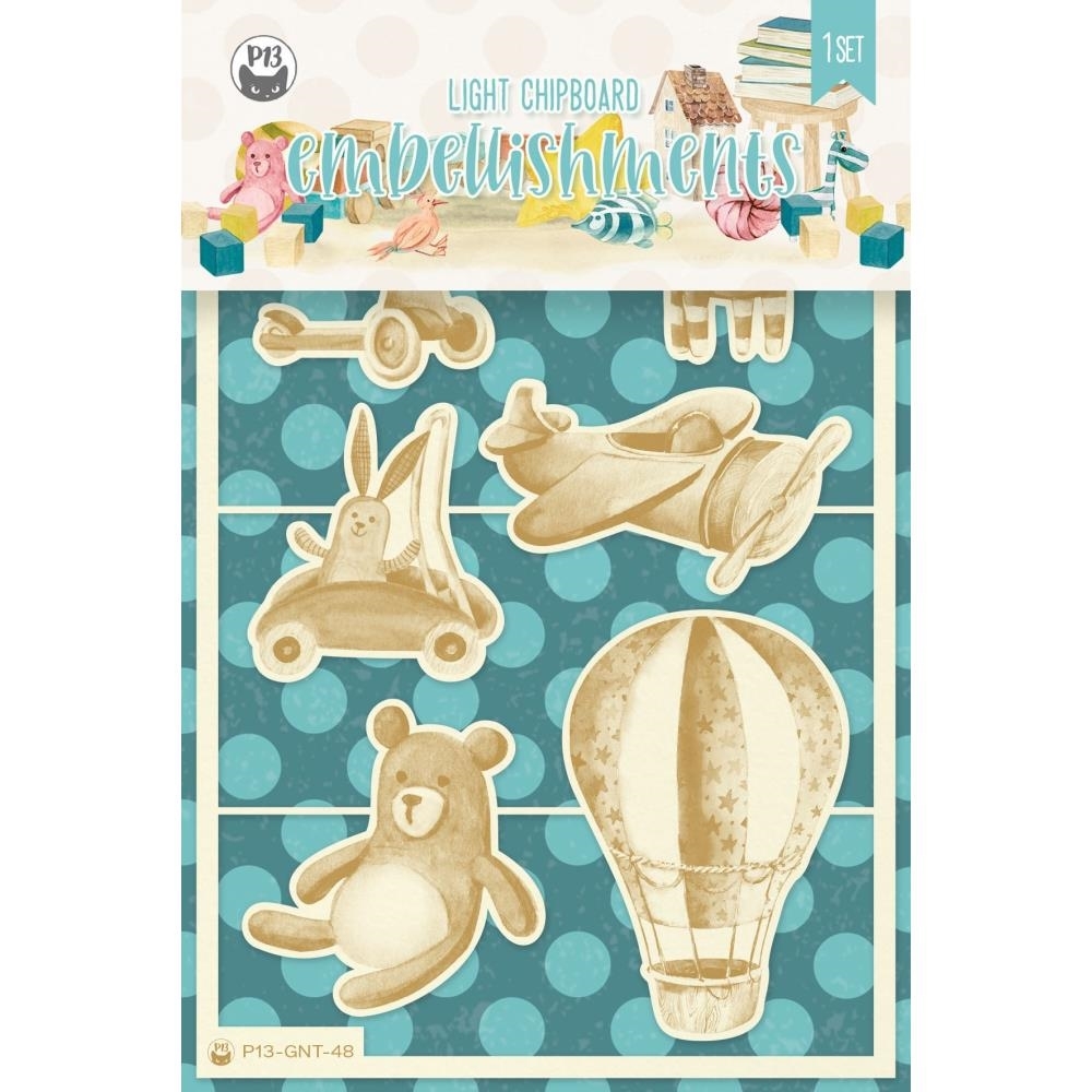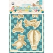 7 diecutsμε εικόνες από λαγουδάκια, αρκουδάκια, αερόστατα, αεροπλάνα, σκούτερ και ζεβράκια.