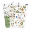 18 αυτοκόλλητα με quotes και εικόνες από λουλούδια, καλάθια πικνικ, ξύλινα μαχαιροπήρουνα και άλλα σε καρτέλα 4” x 9” (10.5 x 23cm).
