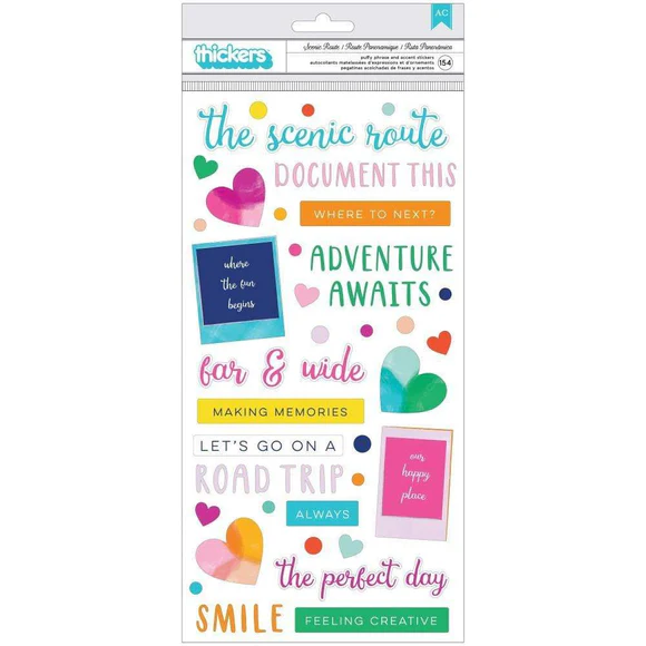 Το τέλειο finishing touch για οποιοδήποτε project! Η συσκευασία περιλαμβάνει 154 puffy αυτοκόλλητα από την Paige Evans και τη σειρά Go The Scenic Route σε 2 φύλλα 9.25Χ28 εκ.