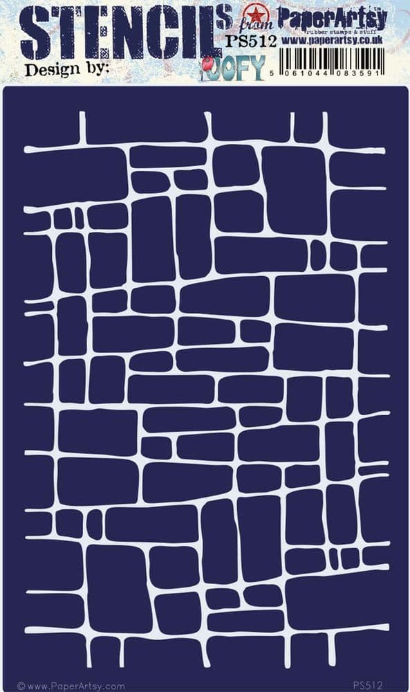 Το σχέδιό του θυμίζει μια αφηρημένη τοιχοποιία με ακανόνιστα τούβλα, ένα μοτίβο που δημιουργεί άμεσα ενδιαφέροντα backgrounds και δίνει βάθος σε mixed media επιφάνειες. Είναι από εκείνα τα stencils που μπορούν να λειτουργήσουν είτε σαν βασικό background είτε σαν ενδιάμεσο layer σε πιο σύνθετες συνθέσεις.