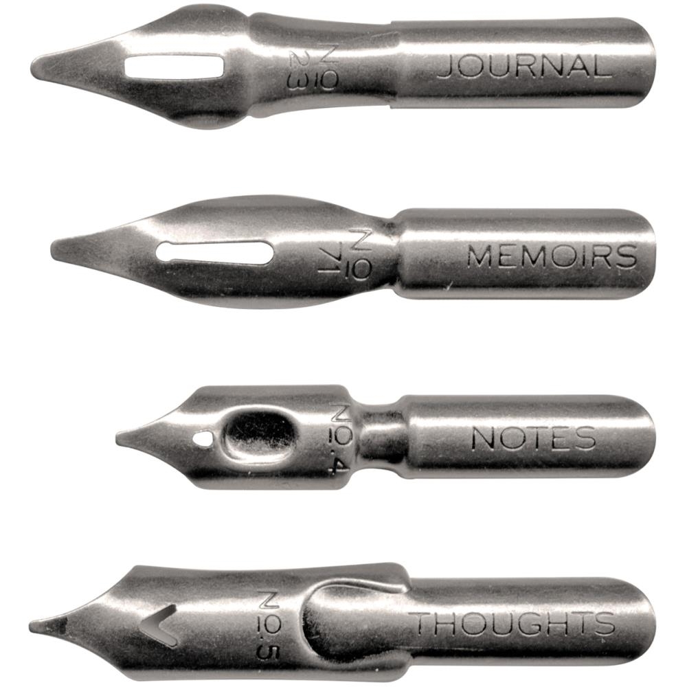 Μεταλλικές μύτες πένας, χαραγμένες με λέξεις όπως thoughts, memoirs κλπ. Μπορούν να χρησιμοποιηθούν παντού, από κάρτες και σελίδες scrapbooking μέχρι κόσμημα και altered items.
