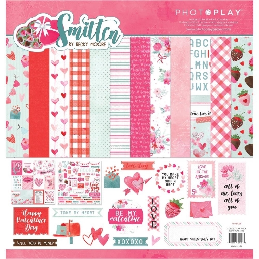 12 φύλλα scrapbooking διπλής όψης και 1 φύλλο με 91 αυτοκόλλητα από τη συλλογή Heart Eyes της Simple Stories.