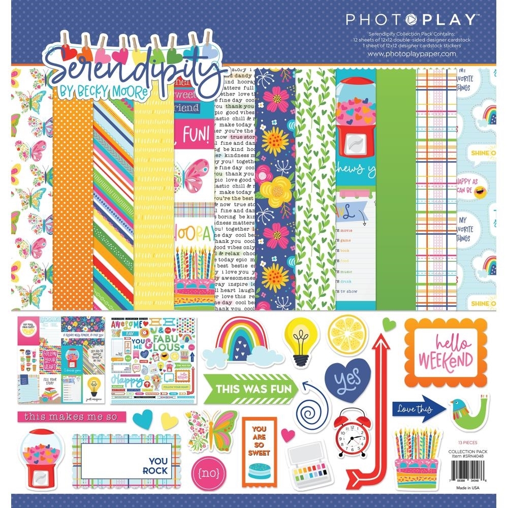 H Becky Moore σχεδιάζει τη συλλογή Serendipity για την Photoplay και σκορπίζει... καλοτυχία στα έργα σας! Μια χαρούμενη ιστορία με ζωηρά χρώματα, όπου πετάγονται από παντού ουράνια τόξα, πεταλούδες και λουλούδια πλαισιωμένα με αισιόδοξα, inspirational quotes! Η συλλογή κινείται στις αποχρώσεις του ροζ, του μπλε και του γαλάζιου.
