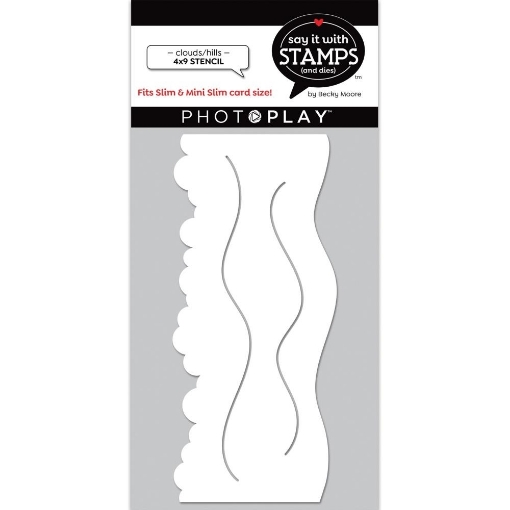 Stencil από την συλλογή της Becky Moore «Say It With Stamps» για την PhotoPlay. Πέρα από τους λόφους και τόσο μακριά! Ταξιδέψτε τα scrapbooking, mixed media και άλλα έργα σας σε ένα συναρπαστικό μακρινό ταξίδι!