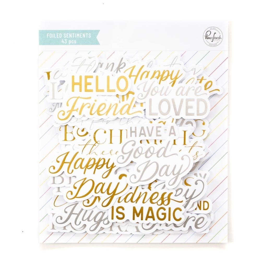 👉 Η συσκευασία περιέχει 43 die-cuts με foil χρυσές λεπτομέρειες. Με sentiments όπως Friends, Hello, Happy, Day και άλλα.