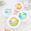 - 5 layering στένσιλ που φτιάχνουν, ανάλογα με την προτίμησή σας, μία φθινοπωρινή, μία χειμωνιάτικη, μία ανοιξιάτικη ή μία καλοκαιρινή στρογγυλή παράσταση