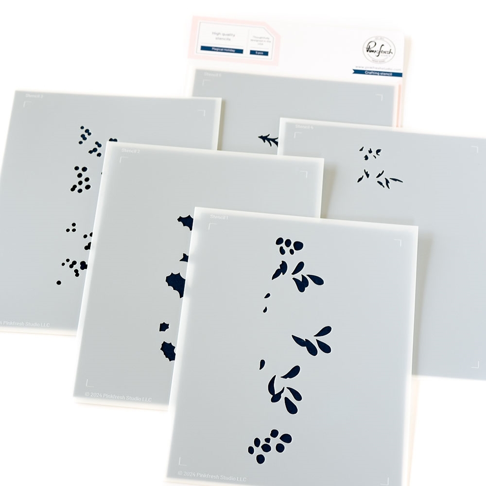 Σετ με 5 layering στένσιλ από τη συλλογή Magical Holiday που έχει σχεδιάσει η Inna Moreva για την Pinkfresh Studio.