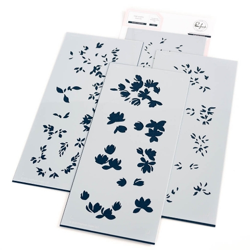 Σετ με 4 layering στένσιλ από τη συλλογή Artistic Magnolias που έχει σχεδιάσει η Valentine Leclerc για την Pinkfresh Studio.
