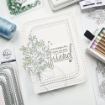 💡 Χρησιμοποιήστε τα στενσιλ χωρίς τις σφραγίδες για ένα soft look ακουαρέλας χωρίς περίγραμμα ή σφραγίστε την εικόνα που δημιουργήσατε με μαύρο μελάνι ή χρυσό embossing για ένα πιο σοφιστικέ αποτέλεσμα. Για να δώσετε διάσταση σε ένα layer προσθέστε glitter, μελάνια embossing, πάστες και άλλα.