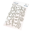• Pinkfresh Studio Dies - Fluttering Butterflies: 5 μεταλλικές μήτρες κοπής. Η ενιαία μήτρα κοπής του σετ, κόβει εύκολα τις πεταλούδες που περιέχονται στο washi tape, στο layering στένσιλ και στις διάφανες σφραγίδες, κι έτσι χρειάζεται να την περάσετε μόνο μία φορά από το die-cutting μηχάνημά σας. Με αυτόν το πρωτοποριακό τρόπο, δεν χρειάζεται πια να συγκρατείτε με ταινία τα διάφορα κομμάτια από τα die σας. Είναι επίσης ιδανική για να κόψετε τις εικόνες πολλές φορές και να δημιουργήσετε μαζικά. Θυμηθείτε ότι η ταινία washi έχει λεία επιφάνεια και θα πρέπει να στερεώσετε τη μήτρα κοπής με ταινία ώστε να μην μετακινηθεί καθώς περάσει από το μηχάνημά σας. Υπάρχουν 4 επιπλέον dies με τα περιγράμματα των sentiments που περιλαμβάνονται στο σετ των διάφανων σφραγίδων.