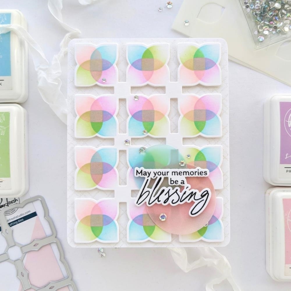 Σετ με 4 layering στένσιλ που σχεδιάσε η Kaitlin Sheaffer για την Pinkfresh Studio. Χρησιμοποιήστε τα για να δημιουργήσετε ένα πολυ-επίπεδο background.