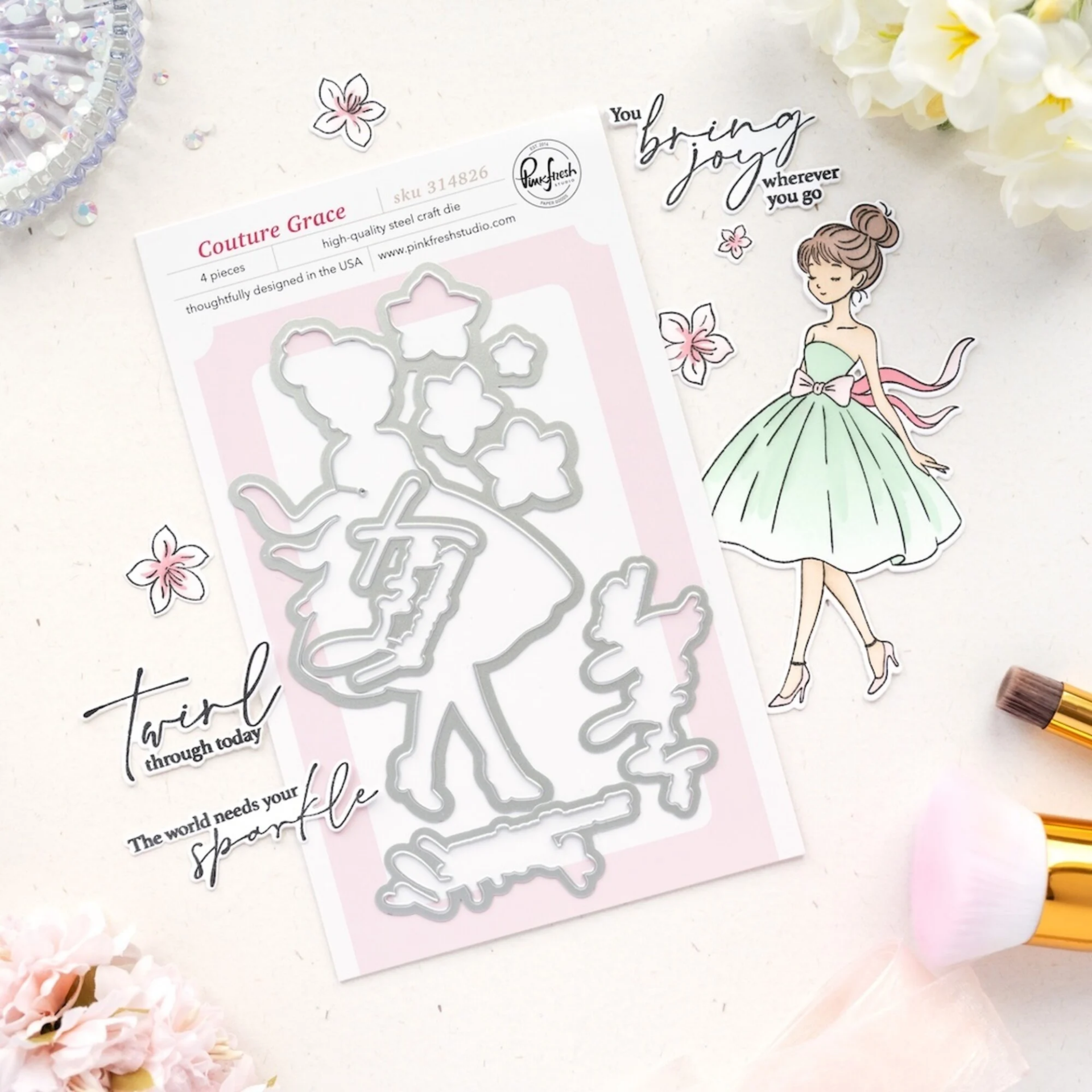 Το Couture Grace Die είναι ένα σετ μήτρες κοπής σχεδιασμένο να συνεργάζεται απόλυτα με το αντίστοιχο σετ σφραγίδων, τα στένσιλ και τα υπόλοιπα προϊόντα της σειράς. Η βασική του δύναμη είναι ότι σου επιτρέπει να κόβεις όλα τα στοιχεία του σχεδίου με ένα πέρασμα, διατηρώντας καθαρό περίγραμμα και σωστή ευθυγράμμιση.