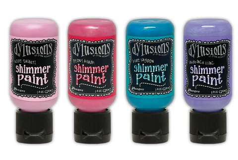 Τα Dylusions Shimmer Paints είναι ακρυλικά χρώματα, φτιαγμένα σύμφωνα με τις προδιαγραφές της Dyan Reaveley - της δημιουργού της σειράς Delusions είναι σχεδιασμένα ειδικά για τον art journaler. Έχουν ειδική φόρμουλα για εύκολα blends και στεγνώνουν γρήγορα με λαμπερό, ιριδίζον φινίρισμα. Επίσης είναι αδιάβροχα αφού στεγνώσουν.