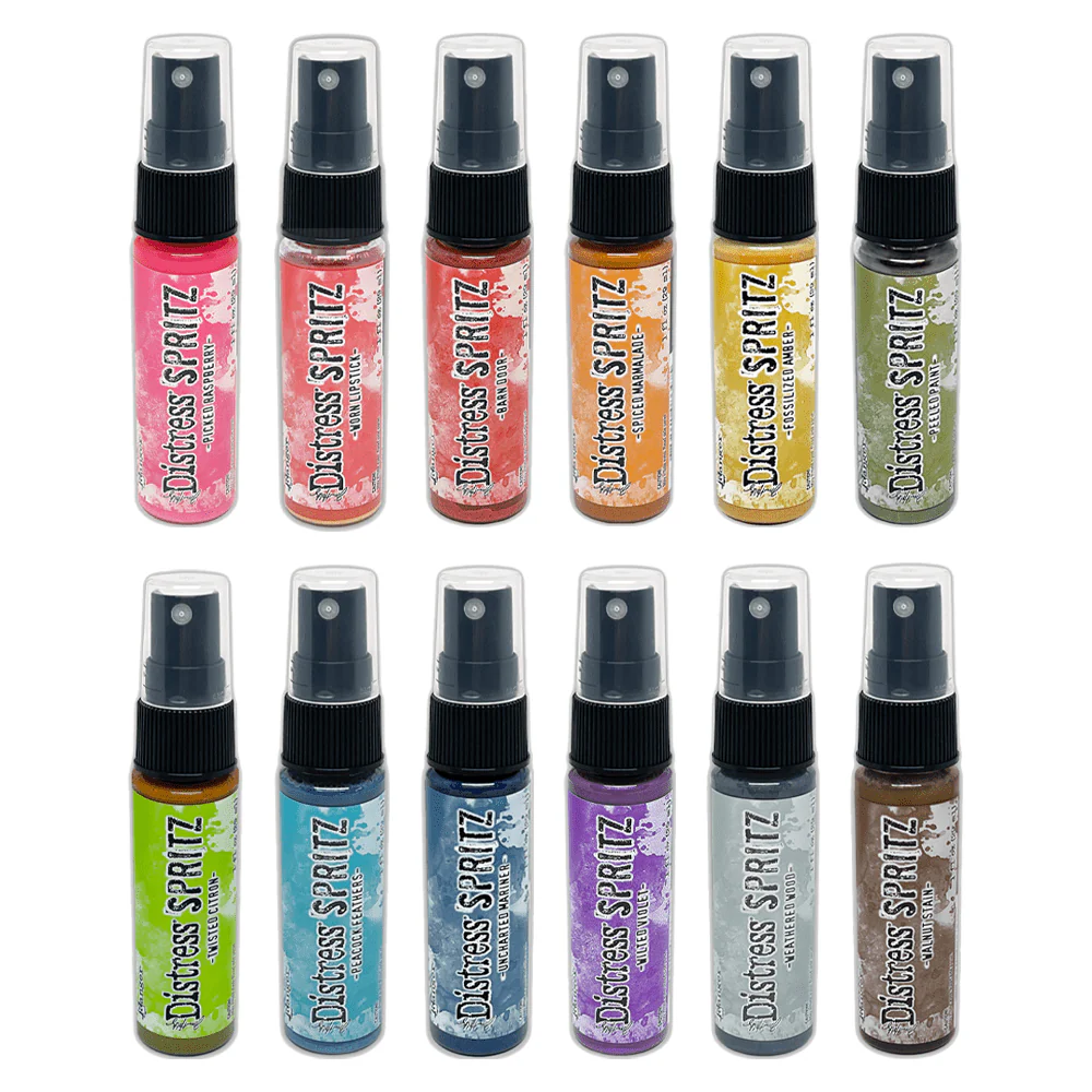 Η spray εκδοχή των Distress Oxide. Υβριδικά μελάνια οξείδωσης σε υγρή μορφή, με chalky αποτέλεσμα και έντονη αντίδραση στο νερό, ιδανικά για layered και textured backgrounds.