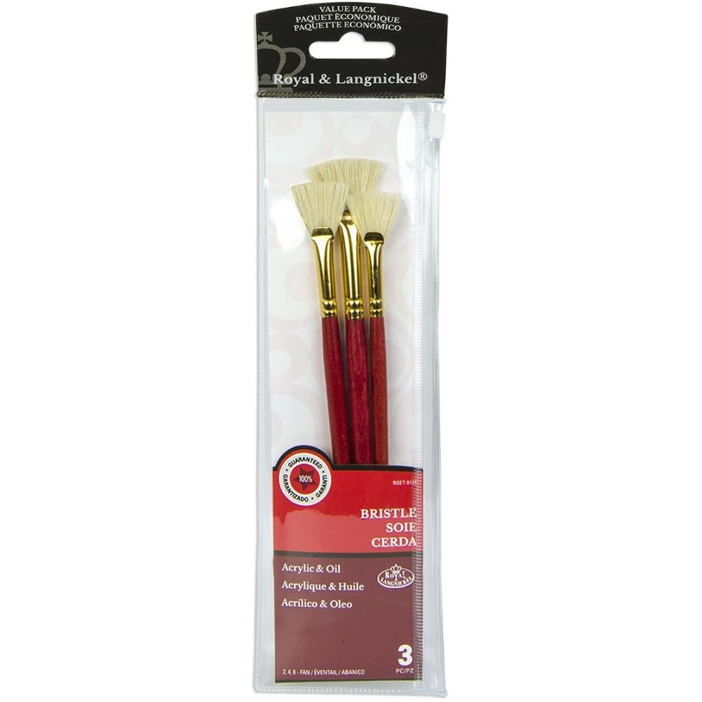 3 πινέλα bristle σε πλαστική θήκη / κασετίνα με κόκκινες λαβές, κατάλληλα για ακρυλικά και λάδι. Περιλαμβάνει τα πινέλα: