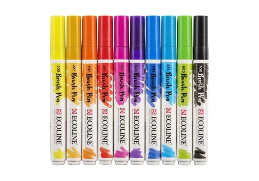 Σετ από 10 brush μαρκαδόρους , της πολύ αγαπημένης σειράς Ecoline Της Royal Talens. Λόγω της μοναδικής τους φόρμουλας με υψηλής ποιότητας χρωστικές αναμειγμένες με αραβική κόμη, οι μαρκαδόροι της σειράς δίνουν το ίδιο δυνατά και όμορφα χρώματα με τις liquid ecolines.