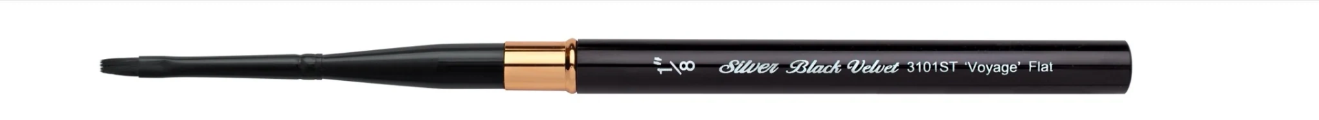Το Silver Black Velvet Voyage™ 3101ST Flat 1/8'' είναι ένα μικρό flat πινέλο ακουαρέλας σχεδιασμένο για λεπτομέρειες, καθαρές ακμές και μικρά washes. Το επίπεδο σχήμα του επιτρέπει ακριβείς κινήσεις και δημιουργία μικρών γεωμετρικών σχημάτων ή καθαρών γραμμών.