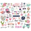 60 die cuts με εικόνες με καρδιές, λουλούδια, κάκτους, σκουτεράκια, φωτογραφικές μηχανές, φράσεις και άλλα.