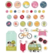 27 διακοσμητικά αυτοκόλλητα brads και 6 chipboard κομμάτια από τη συλλογή Summer Lovin' της Simple Stories.