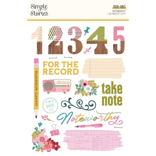 Η συσκευασία περιλαμβάνει 2 φύλλα με rub-ons με θέμα το memory keeping. Εικόνες με τους αριθμούς 1 έως το 5, μολύβια, sentiments, λουλούδια, είδη γραφείου, vintage γραφομηχανές, ετικέτες και άλλα πολλά.
