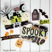 24 χαρτιά scrapbooking με εικόνες από φαντάσματα, σκελετούς, νυχτερίδες, ιστούς αράχνης και άλλα σε halloween μοτίβα.