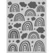 👉 Η συσκευασία περιέχει ένα στένσιλ με ουράνια τόξα, αστεράκια, σύννεφα και φεγγάρια.