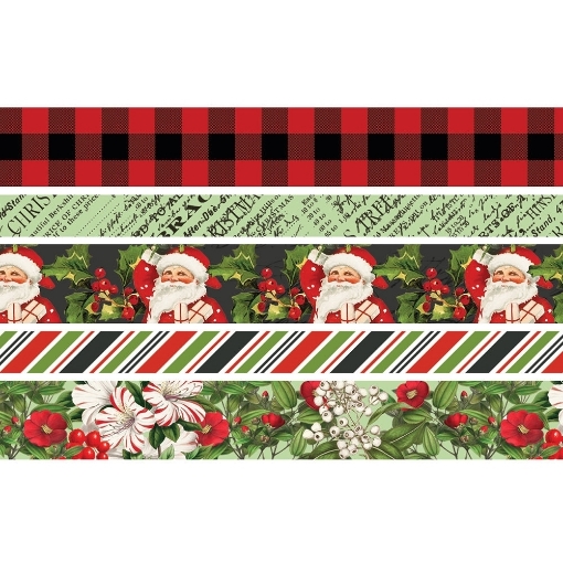Η συσκευασία περιλαμβάνει 5 ρολά washi tape με θέμα τα Χριστούγεννα και εικόνες με Άγιους Βασίληδες, αλεξανδρινά, γκι και άλλα χριστουγεννιάτικα μοτίβα.