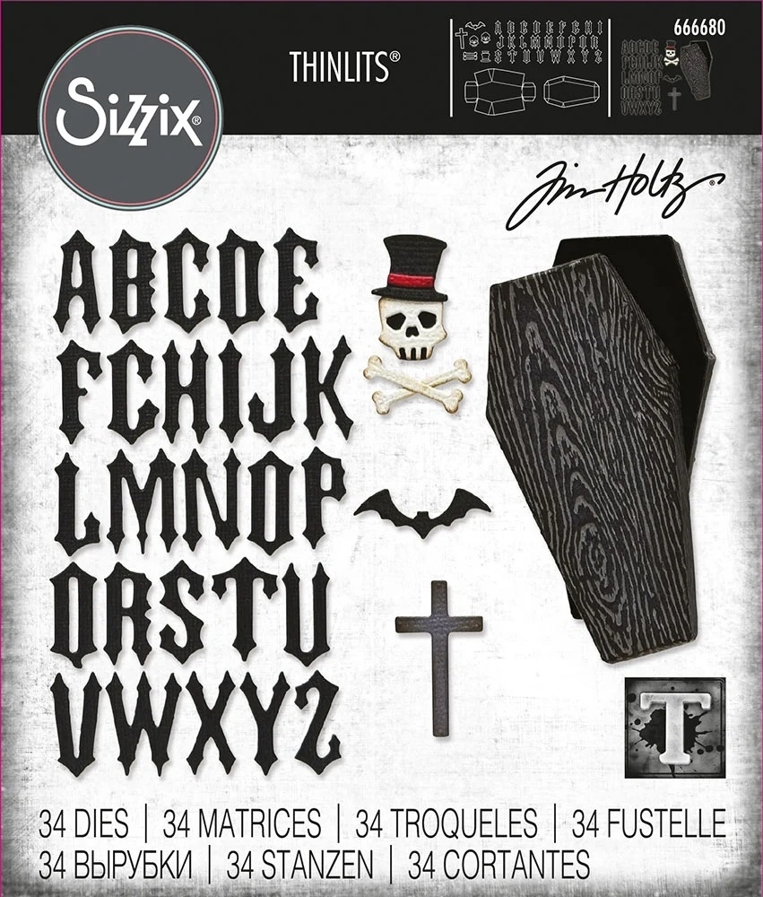 - 34 μήτρες κοπής που φτιάχνουν 3D κουτάκια σε σχήμα μικρών φέρετρων (ιδανικά για treat-or-trick κεράσματα), κεφαλαία γράμματα, νεκροκεφαλές και άλλα